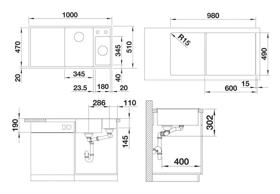 - afmetingen spoelbak 345 x 470 mm