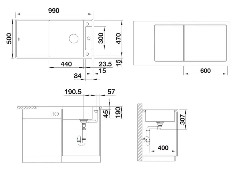 - afmetingen spoelbak 470 x 440 mm