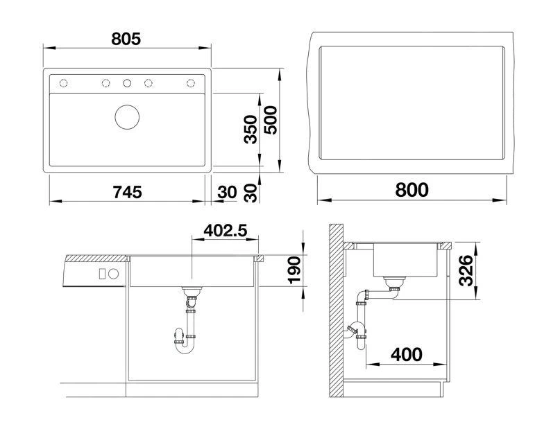 - afmetingen spoelbak 745 x 350 mm
