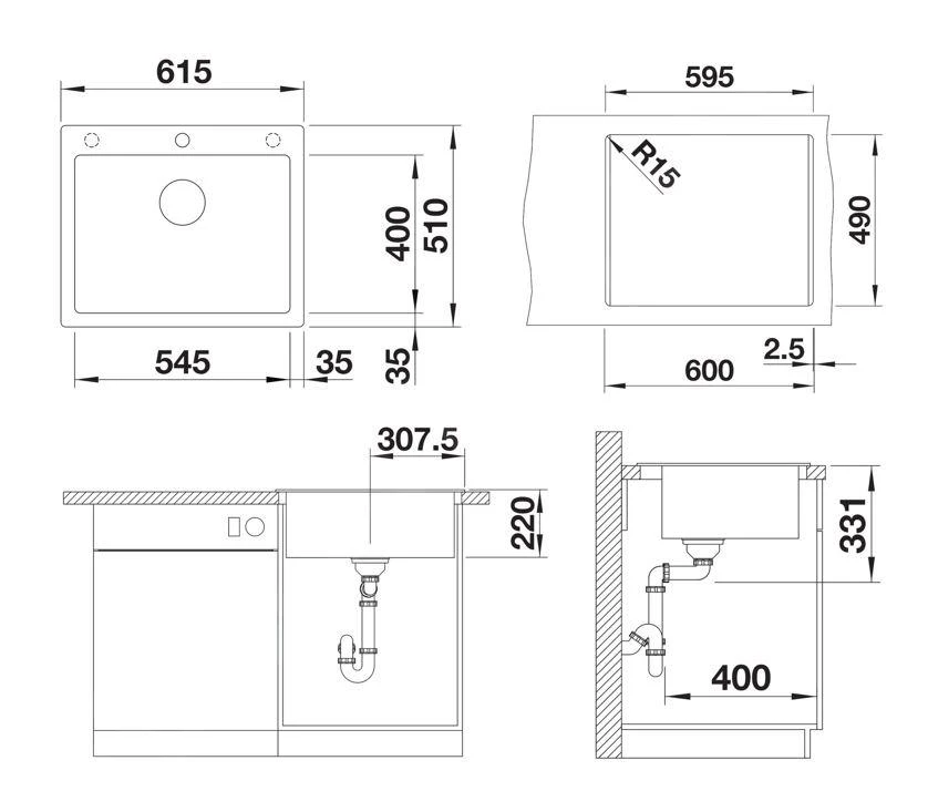- afmetingen spoelbak 545 x 400 mm