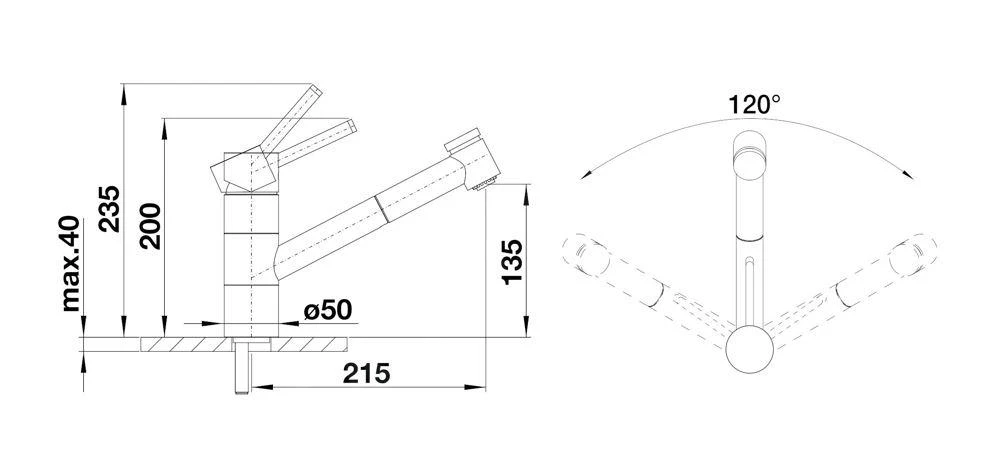 - draaibare uitloop, draaibereik 120°