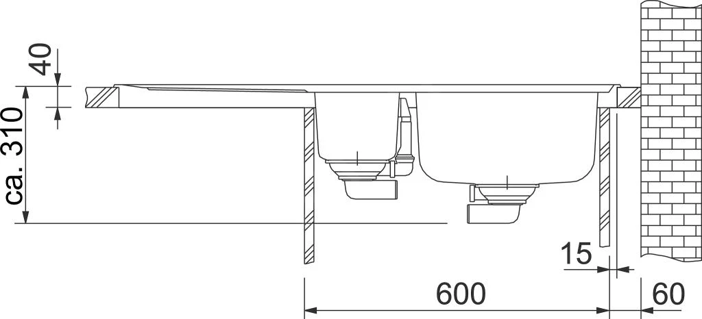 - kleine spoelbak 167 × 306 × 150 mm