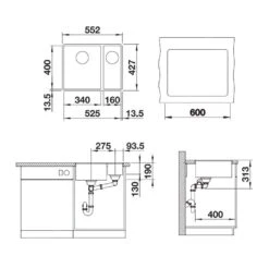 Blanco Subline 340/160 – Silgranit Spoelbak, 552×427 Mm, Spoelbak Links, Aluminium 523570