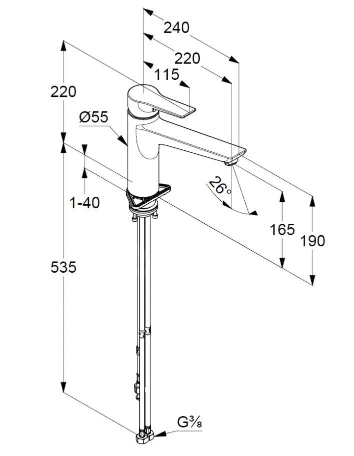 - flexibele aansluitingen G 3/8