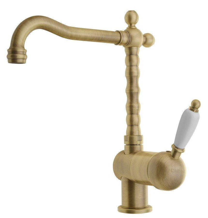 - bronskleurig kraanlichaam, witte keramische greep